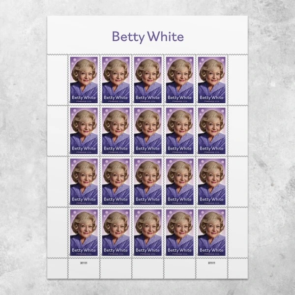 The Betty White stamp is being issued in panes of 20 Forever® stamps. This Forever stamp will always be equal in value to the current First-Class Mail® one-ounce rate.